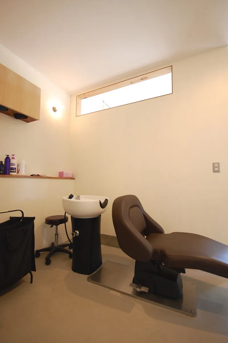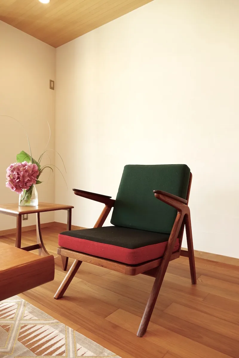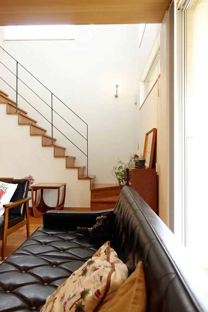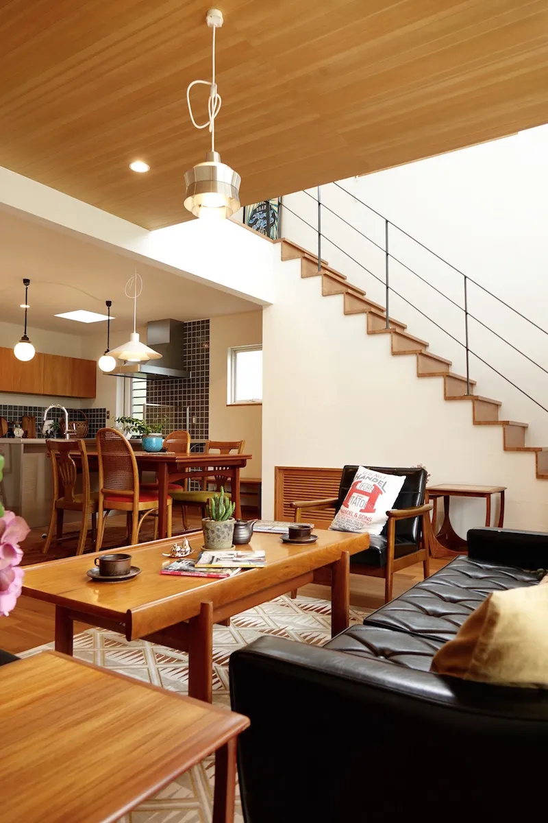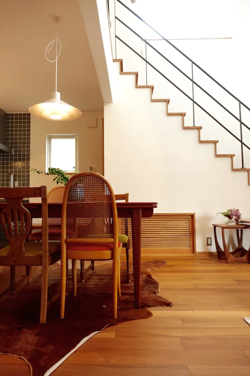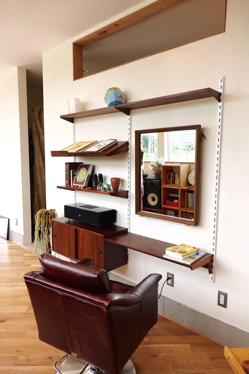 以前テナントとして借りていた美容室の店舗内装を依頼したところから、Wさんと同社の関わりは始まる。「ピーススタイルで家を建てたことがある従兄から紹介されたのが出会いでした。ミッドセンチュリーデザインの影響を受けたヴィンテージ感あるセンスや、美しい仕上がりが好みでお願いすることにしたんです。その時の内装が気に入り、イメージを理解して形にしてくれるという信頼感となりました。自分の店舗併用住宅を建てることになった時も、迷わず家づくりを依頼しました」とWさん。同社に土地の探し方のアドバイスももらい、3年以上かけて現在の場所を得たという。こだわりや要望はたくさんあったが、最大のポイントは、ヴィンテージマンションなどに見られるミッドセンチュリーの味わい深い雰囲気。「完成した家には、とても満足しています。デザインやスタイルだけでなく、全館空調の冷暖房も快適で、住み心地も理想的でした」と入居後の暮らしを語ってくれた。