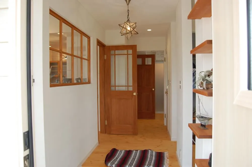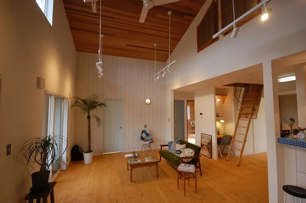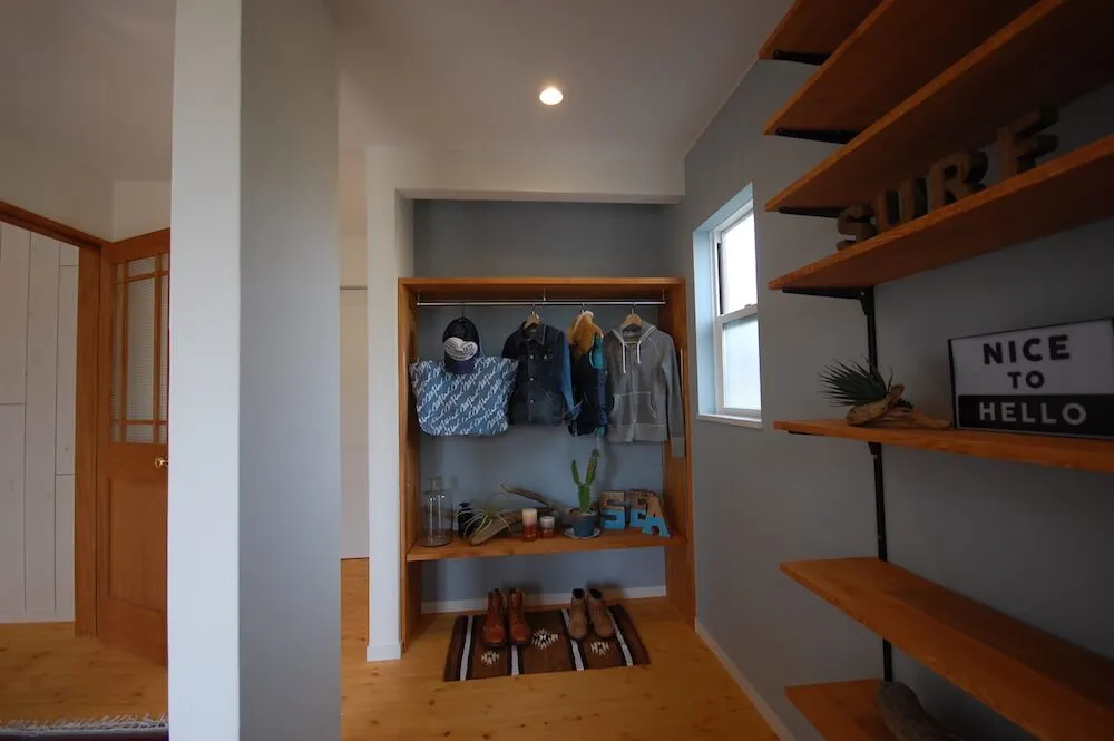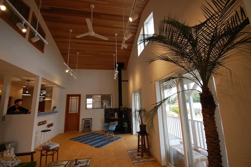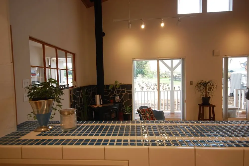 「アメリカ西海岸風のビーチハウスにしたい。薪ストーブと平屋ははずせない」と、漠然とした思いを抱いていた夫のUさん。アウトドア&車が好きで、カリフォルニアスタイルの家を強く望んでいた。ネット検索していくうちに、ピーススタイルとの出会いが。「相談してみると、いろいろな提案をしてくれてワクワクしてきました。ピーススタイルの社長さんご夫妻はじめ職人さんたちが一つのチームになって、ずっと同じメンバーで家造りに携わっている、という点も信頼がおけて安心感につながりました」と語る夫のUさん。提案力、デザインや職人技などのクオリティが決め手となったという。「図面上ではピンとこない部分は、実際に建築現場で施工途中の空間を見ながら、壁やタイル、照明などを決められました」「想像以上の仕上がりに大満足です!家造りの間も、完成した今も、毎日が楽しくなりました」と満面の笑みを浮かべるUさんご夫妻。屋内のインテリアやガーデンなど「少しずつ進化させていきたいです」