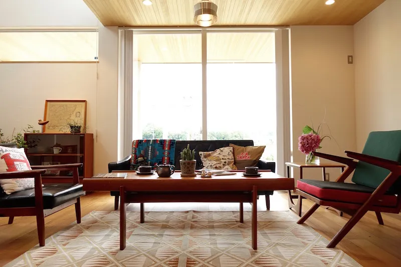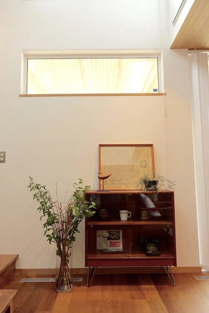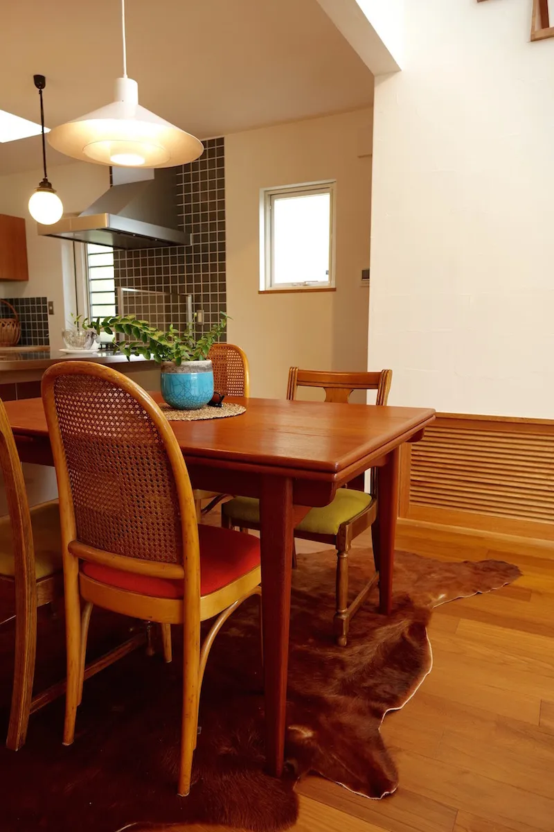 以前テナントとして借りていた美容室の店舗内装を依頼したところから、Wさんと同社の関わりは始まる。「ピーススタイルで家を建てたことがある従兄から紹介されたのが出会いでした。ミッドセンチュリーデザインの影響を受けたヴィンテージ感あるセンスや、美しい仕上がりが好みでお願いすることにしたんです。その時の内装が気に入り、イメージを理解して形にしてくれるという信頼感となりました。自分の店舗併用住宅を建てることになった時も、迷わず家づくりを依頼しました」とWさん。同社に土地の探し方のアドバイスももらい、3年以上かけて現在の場所を得たという。こだわりや要望はたくさんあったが、最大のポイントは、ヴィンテージマンションなどに見られるミッドセンチュリーの味わい深い雰囲気。「完成した家には、とても満足しています。デザインやスタイルだけでなく、全館空調の冷暖房も快適で、住み心地も理想的でした」と入居後の暮らしを語ってくれた。